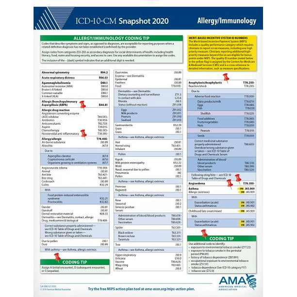 Icd 10 Cm 2020 Snapshot Coding Card Allergy Immunology Other Walmart Com